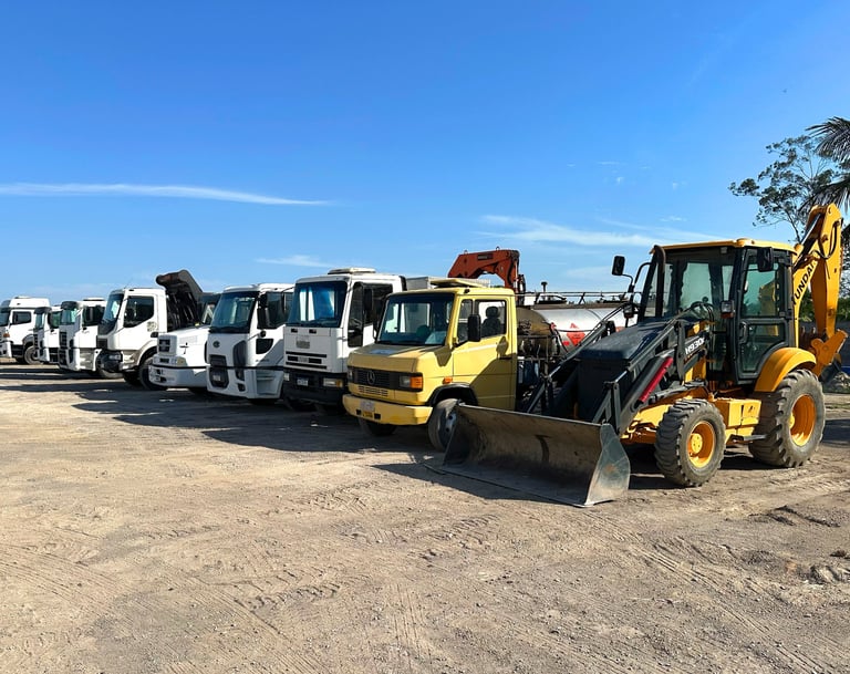 Temos mais de 50 máquinas, entre: Caminhões Basculantes, Caminhão Munck, Caminhão Tanque, Caminhão Pipa, Conjuntos de Cavalo, Carreta Prancha, Escavadeiras Hidráulicas, Mini Escavadeira, Mini Carregadeira, Motoniveladoras, Pá Mecânica, Retroescavadeiras, Rolos Compactadores, Trator de Pneu, Trator de Esteira e Veículos de Apoio Operacional.